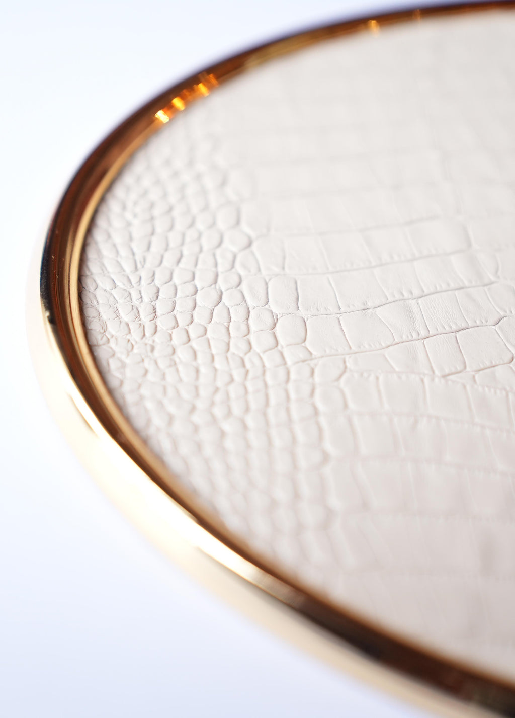 Timsah Deri Detaylı Krem Renk Supla ve Kahve Tepsi