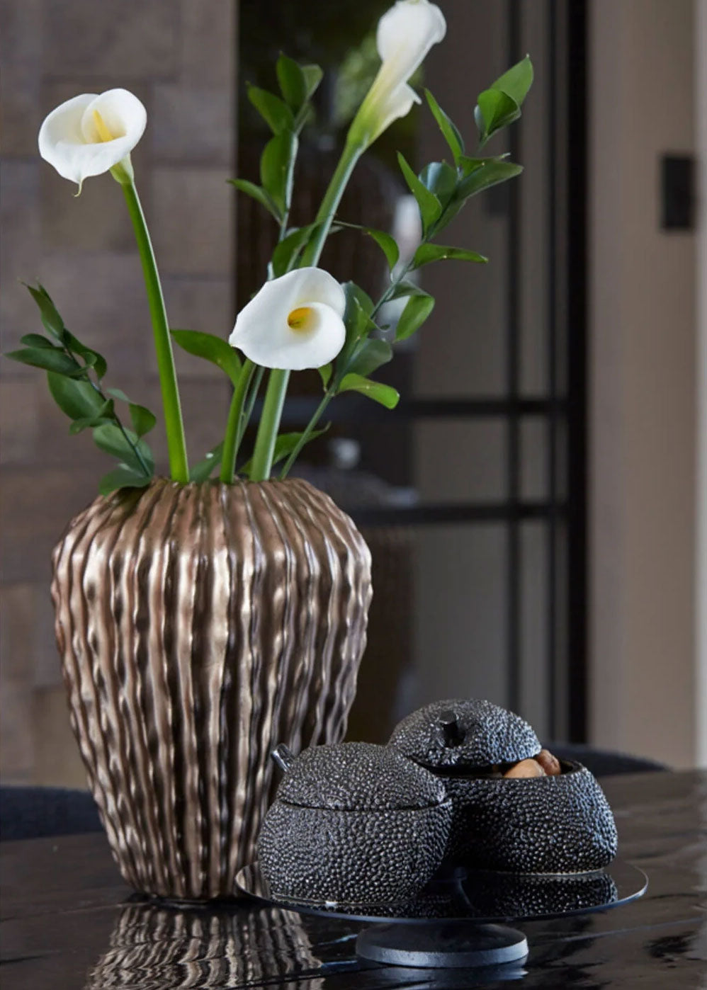 - Nervürlü Dokuya Sahip Bronz Vazo