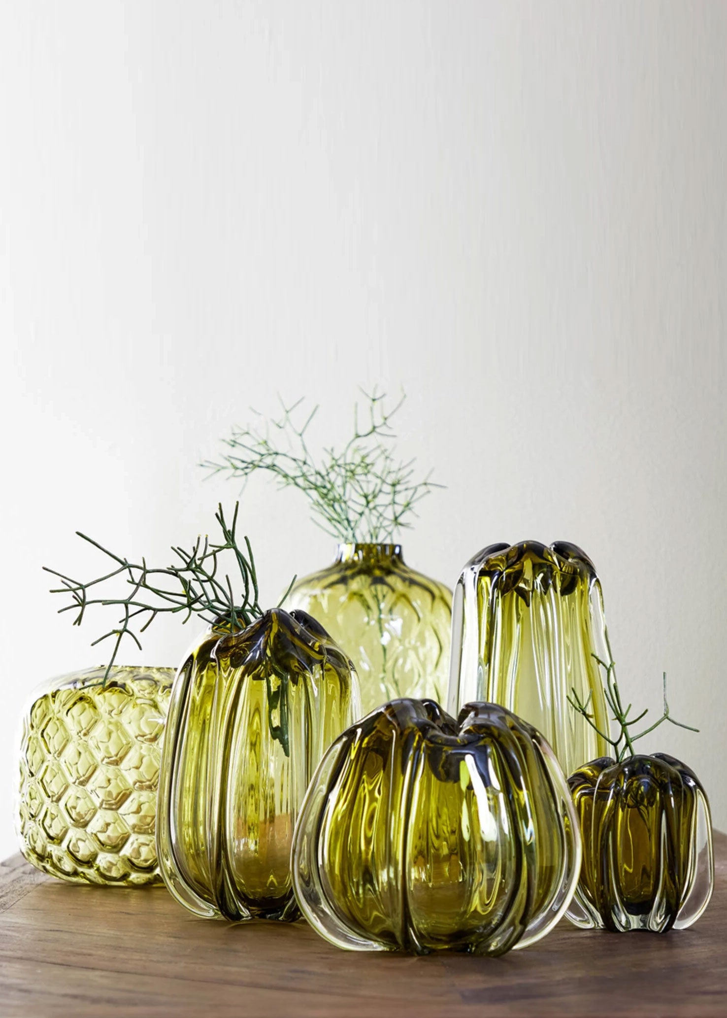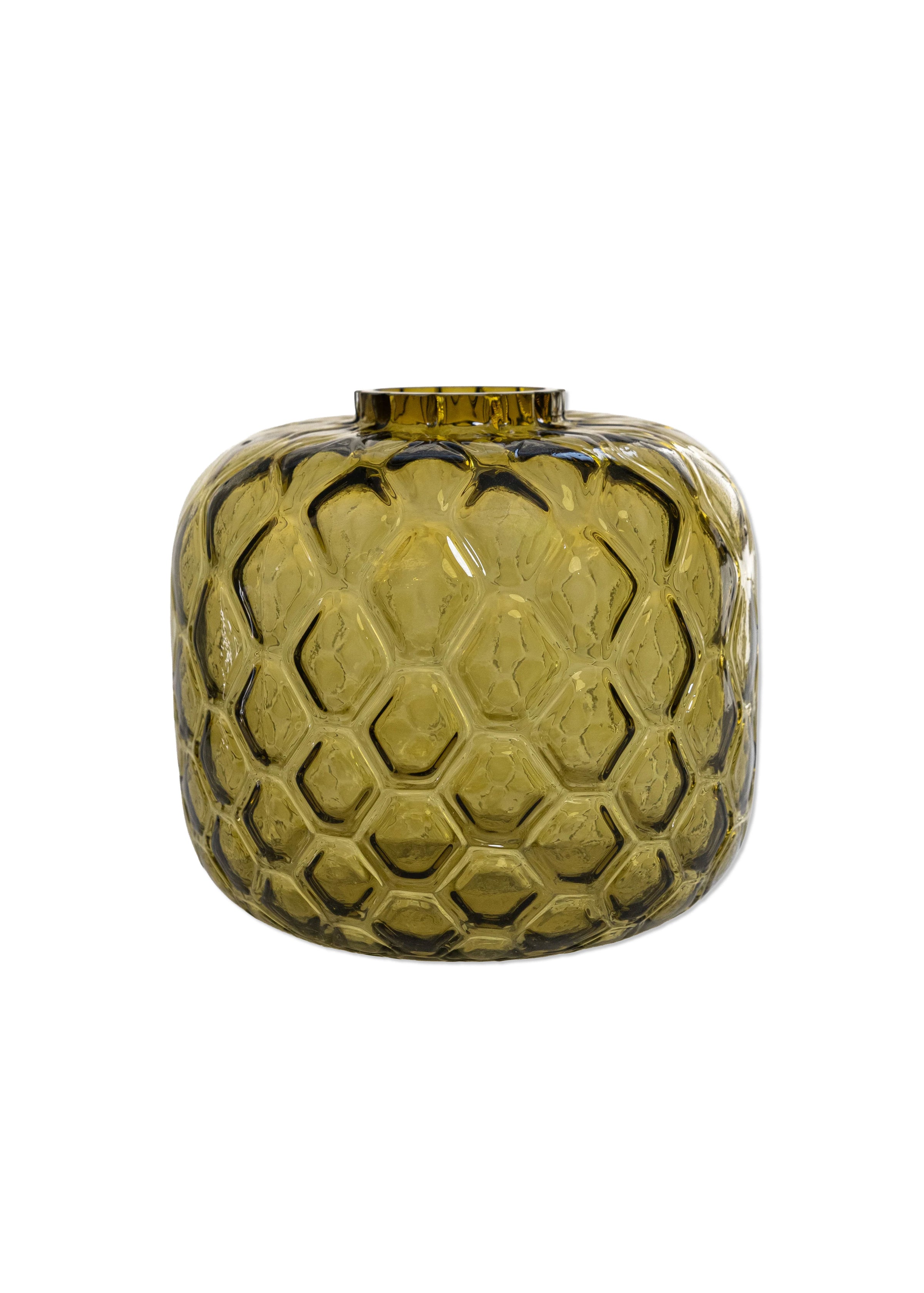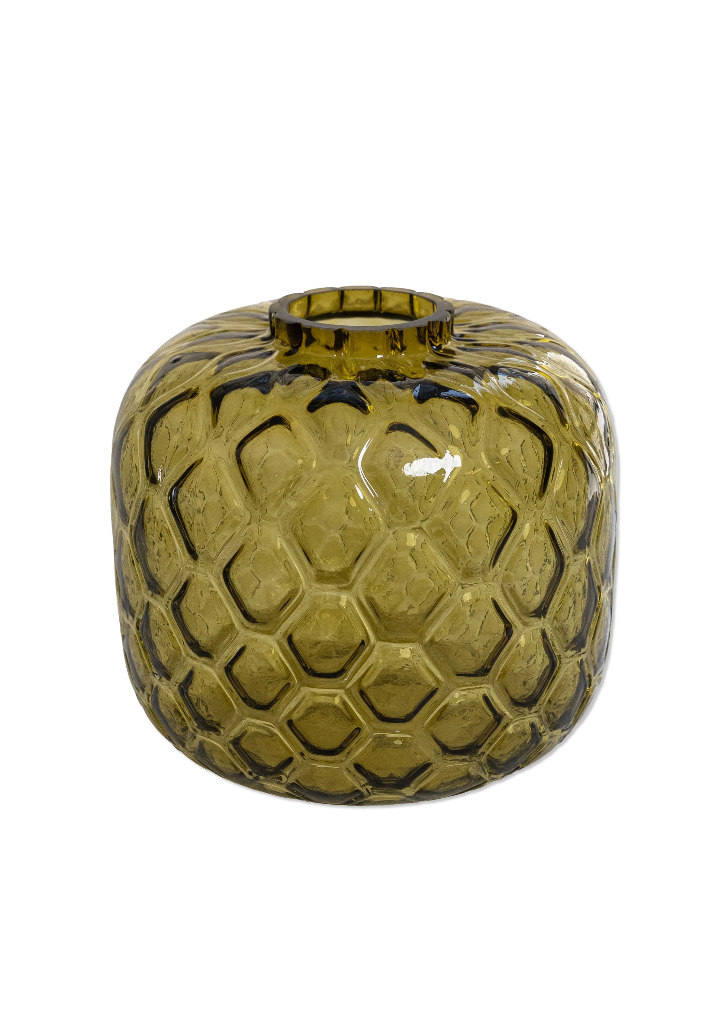 - Geometrik Dokulu Yağ Yeşili Cam Vazo