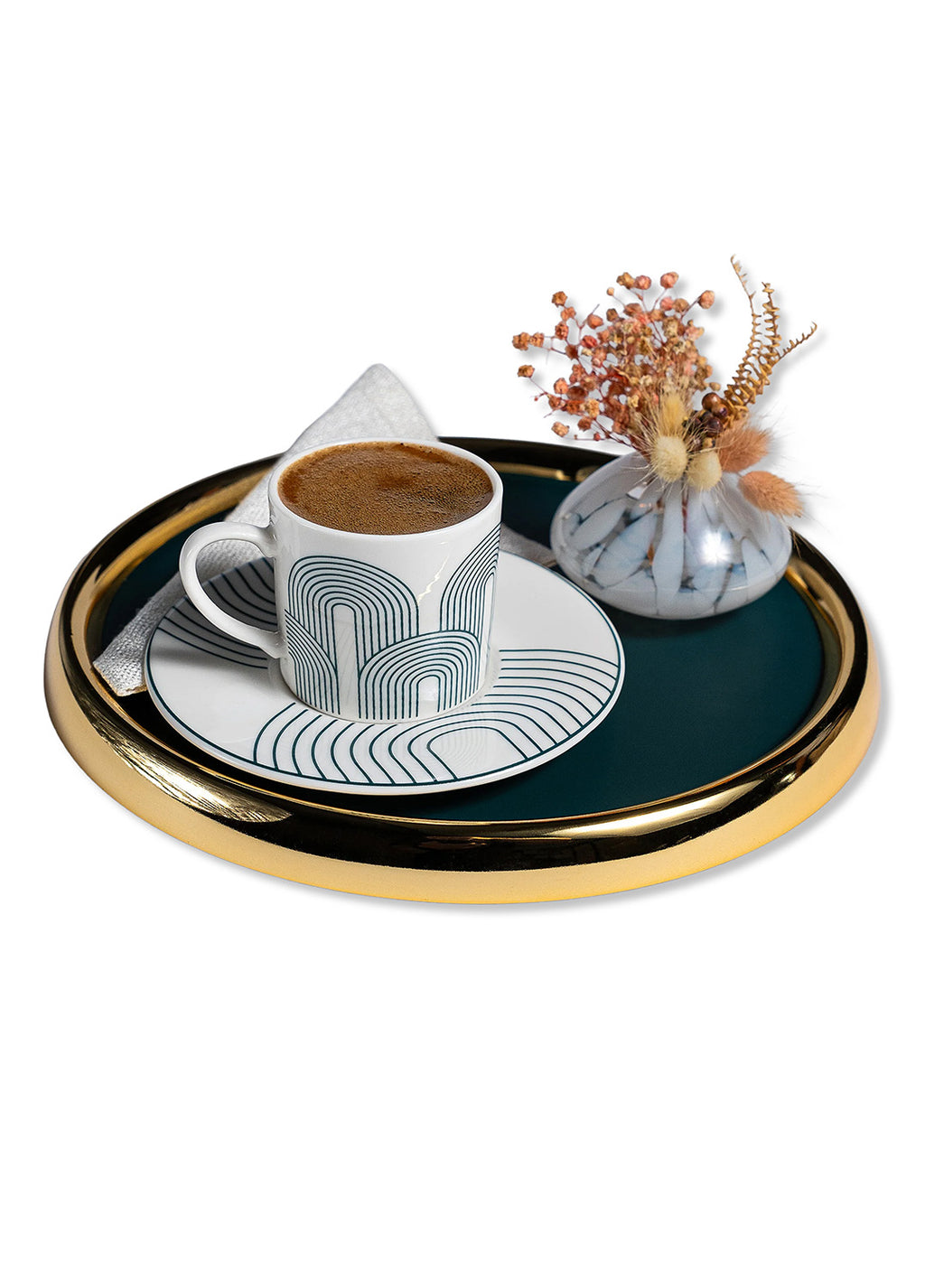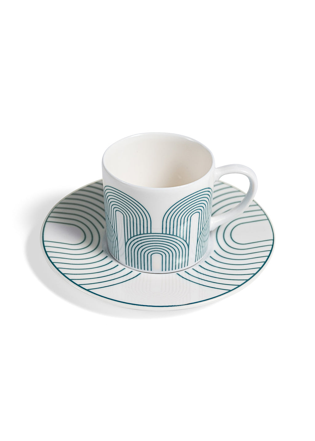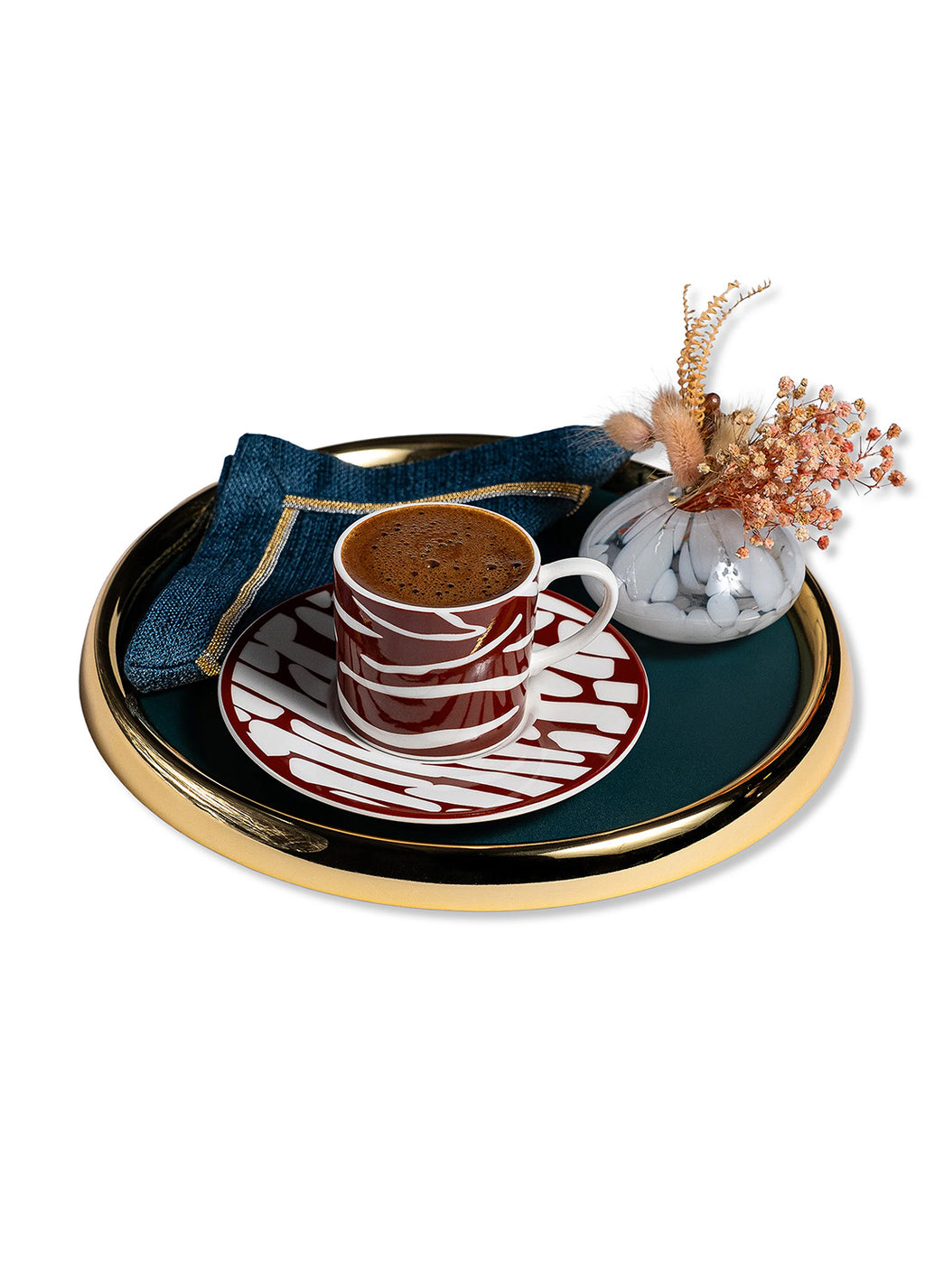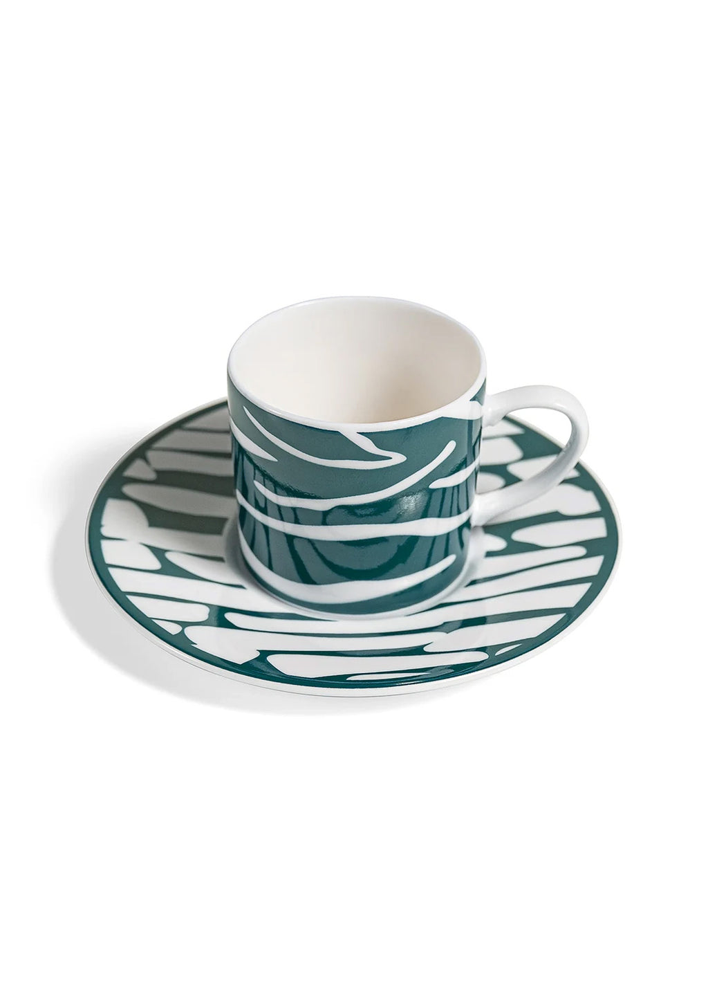 Çizgili Desen Petrol Renk Kahve Fincanı