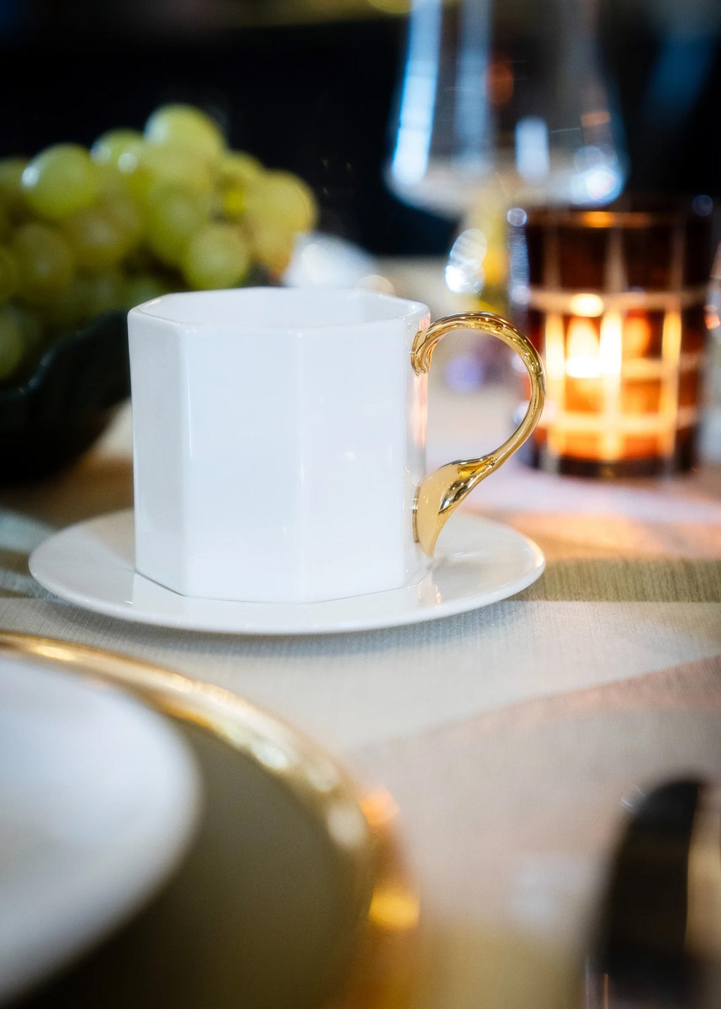 Porselen , El yapımı Gold Kaşık Detaylı Mug