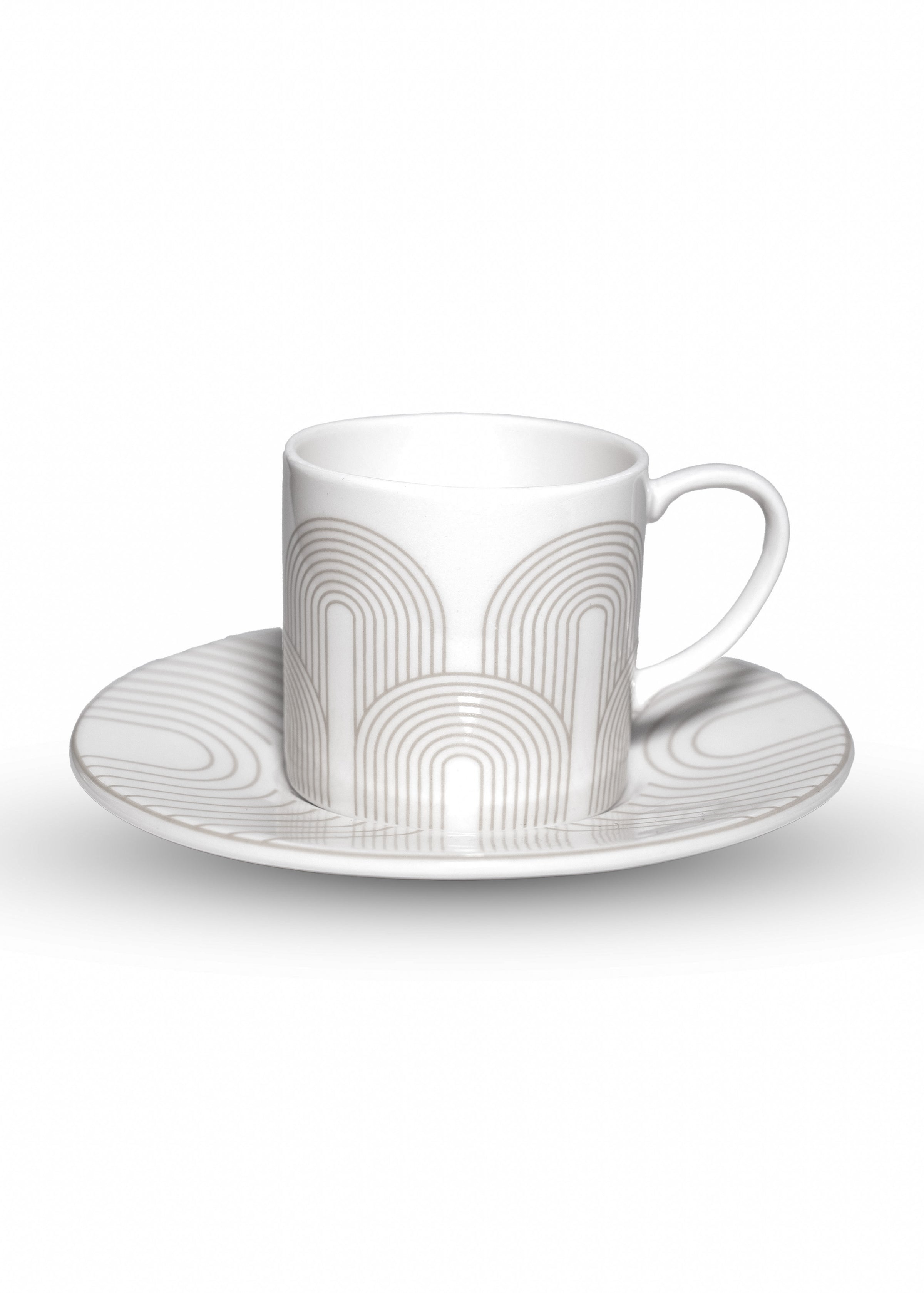 - Çizgili Desen Vizon Renk Kahve Fincanı