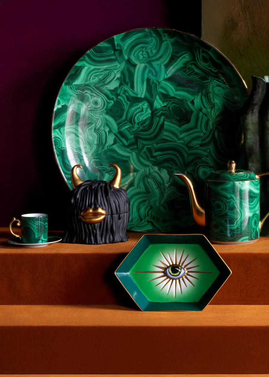 El yaldızlı 24K altın vurgulara sahip bir tasarımdır.