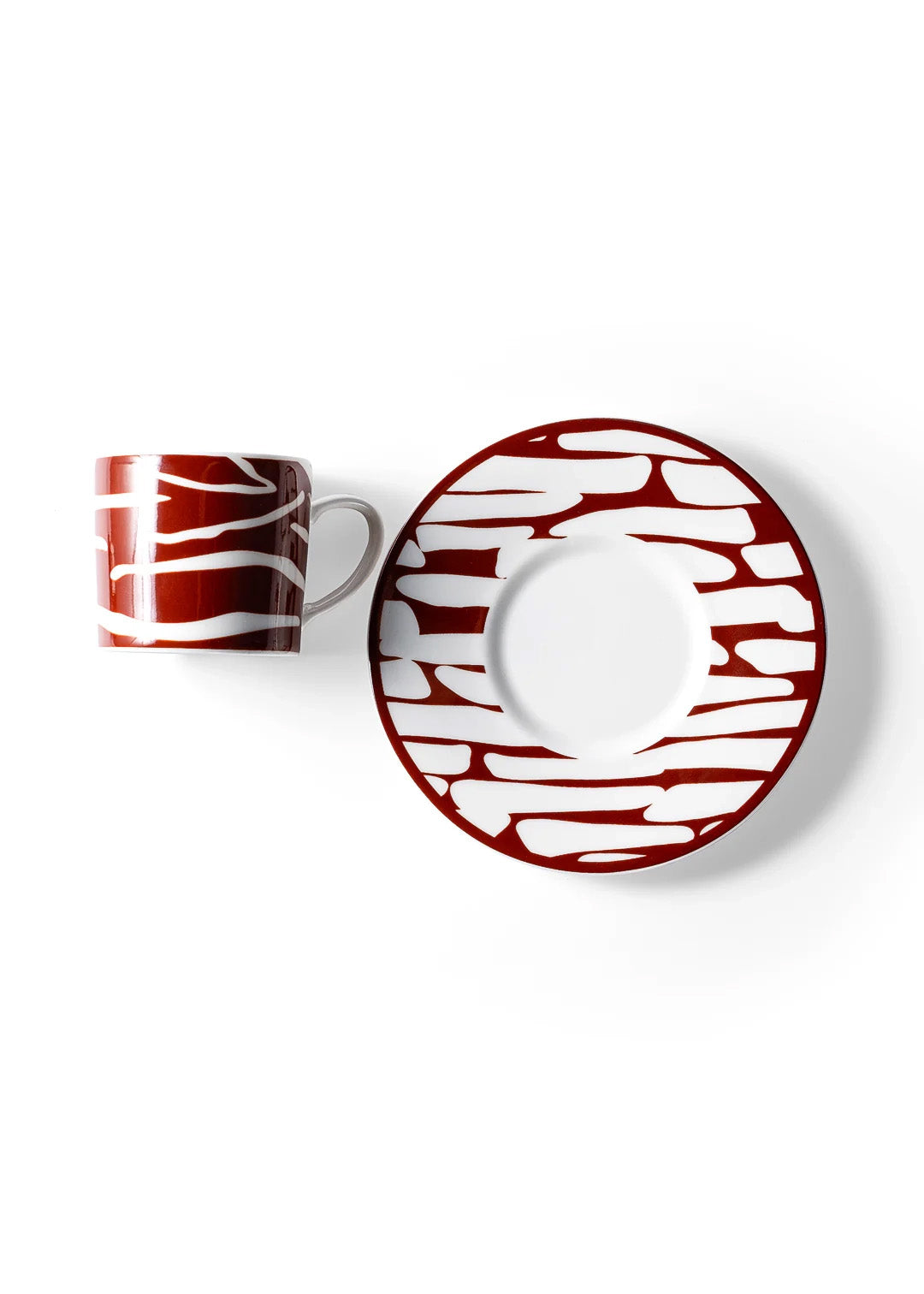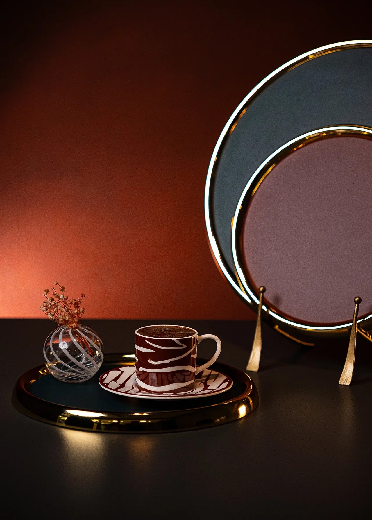- Zebra Desen Bordo Renk Kahve Fincanı