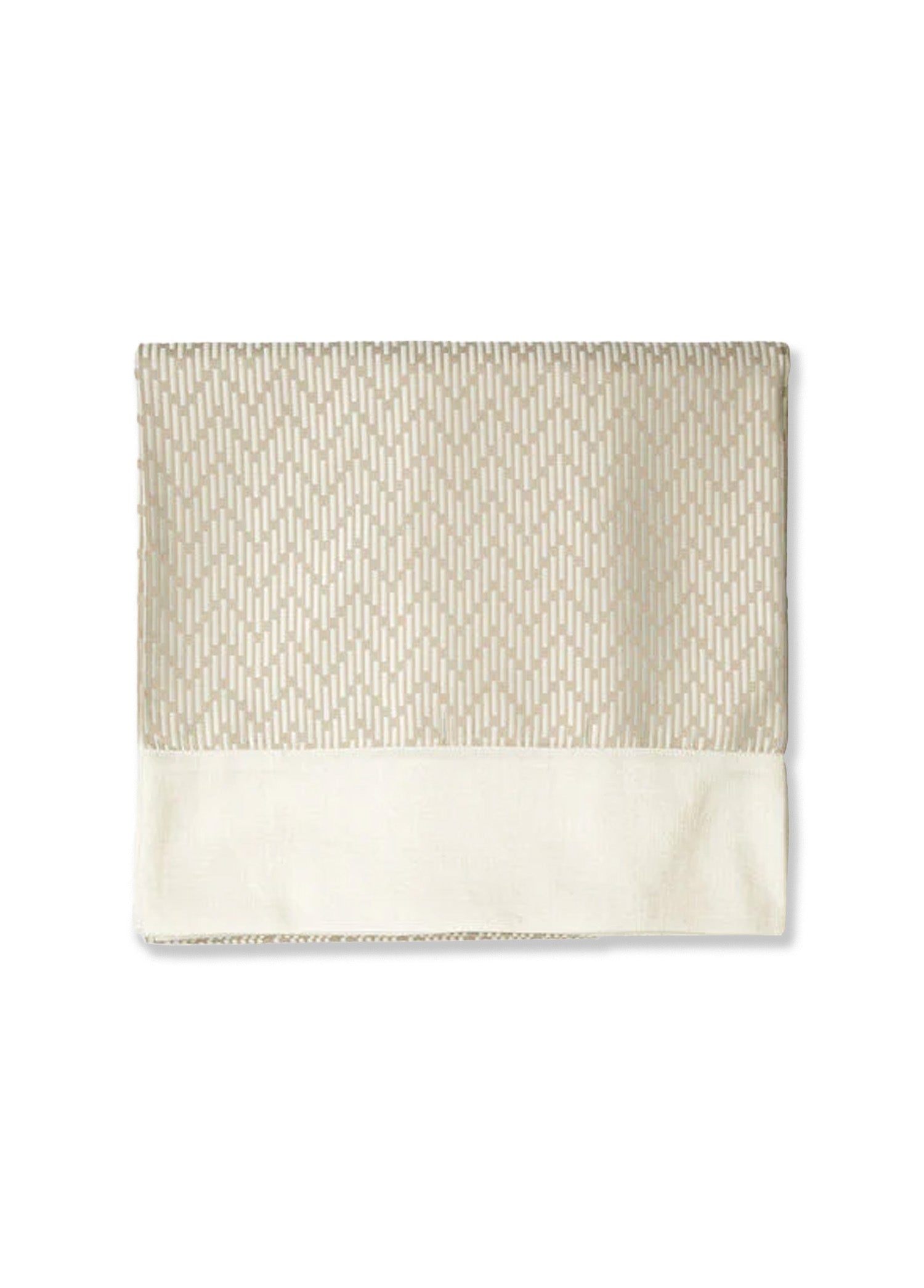 - Krem Zikzak Desenli Keten Masa Örtüsü
