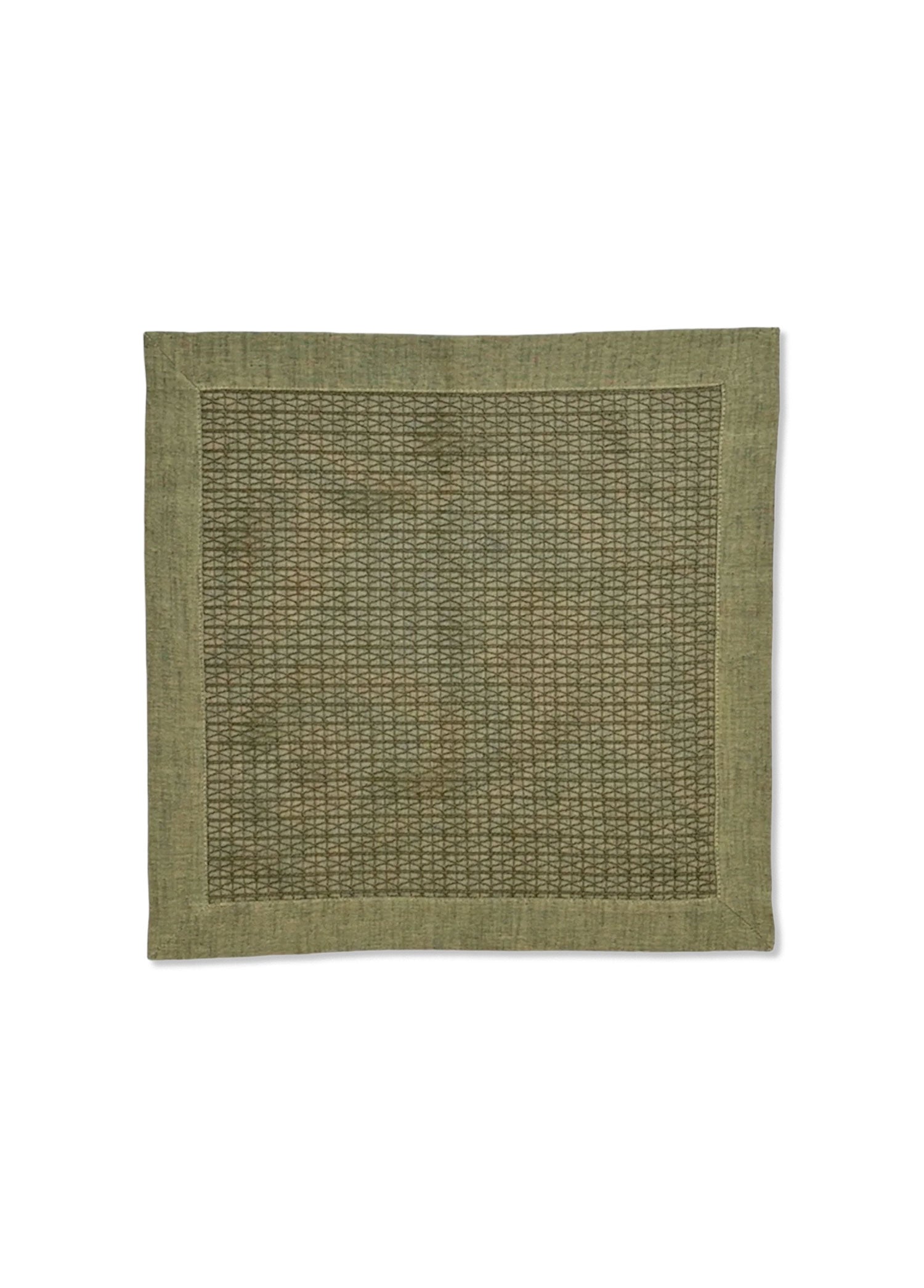 - 4'lü, haki yeşil renk, geometrik desenli file peçete seti