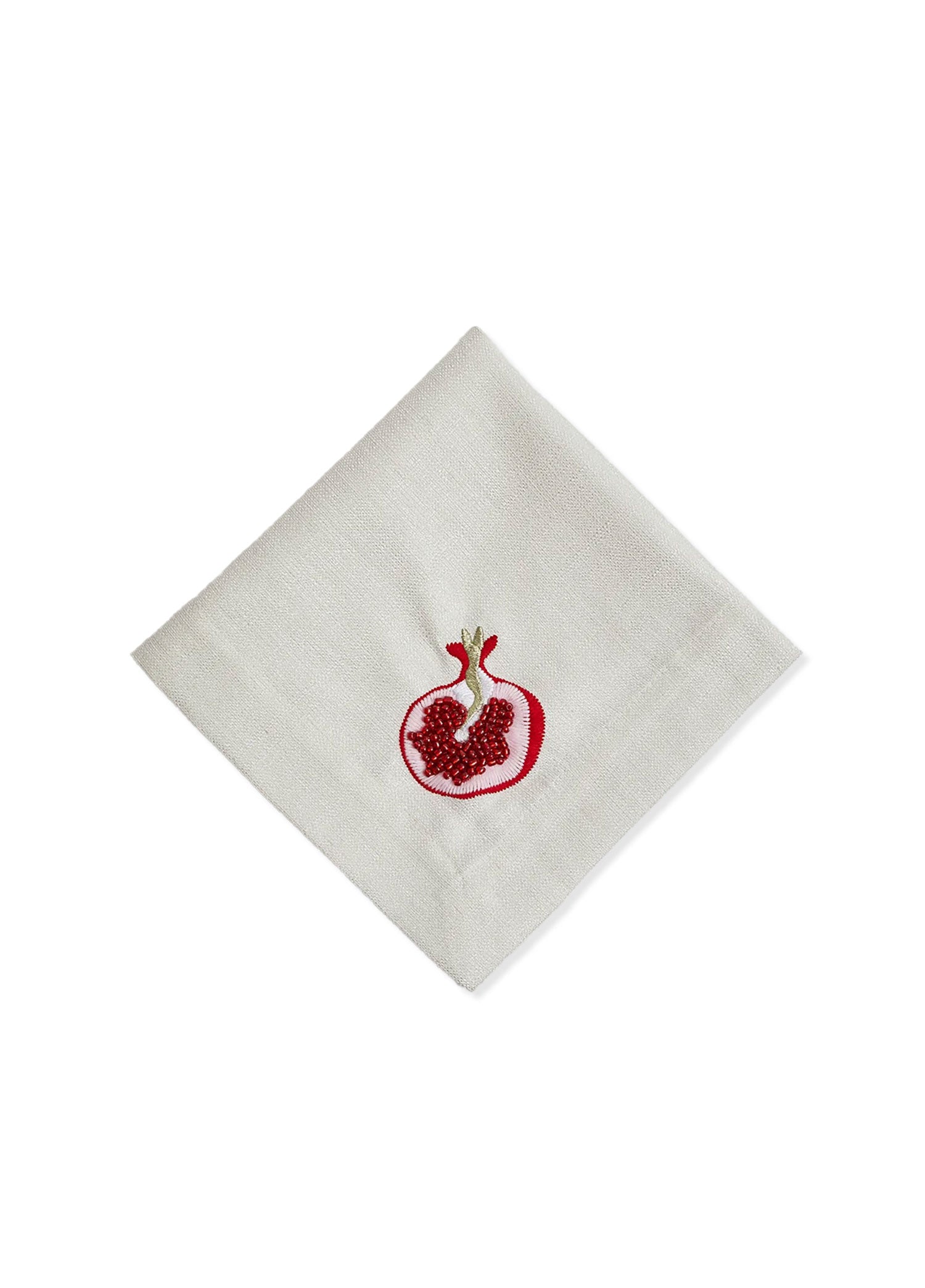 - Boncuk Detaylı Beyaz Nar Desenli Peçete