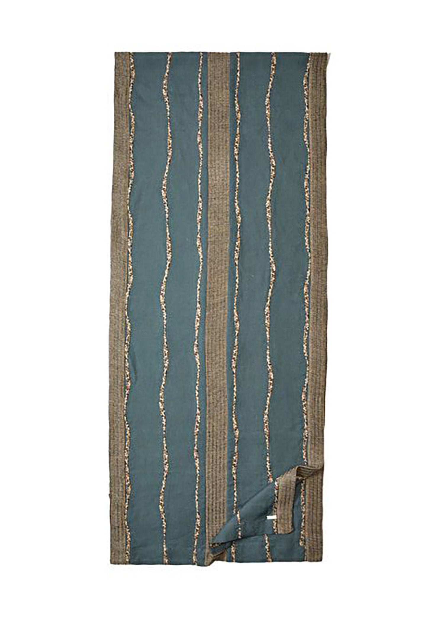 - Mavi Şerit Detaylı Keten Runner