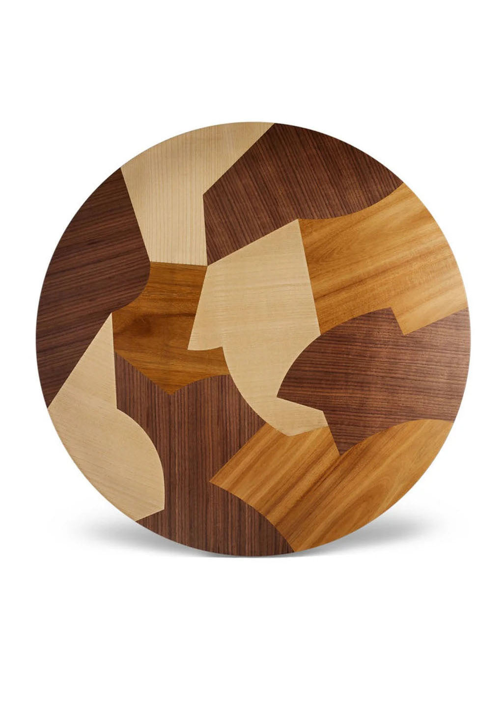 - Ceviz, akasya ve huş ağaçlarından geometrik desenlerle işlenmiş döner tabla, metal bir döner tabla mekanizmasıyla donatılmış.