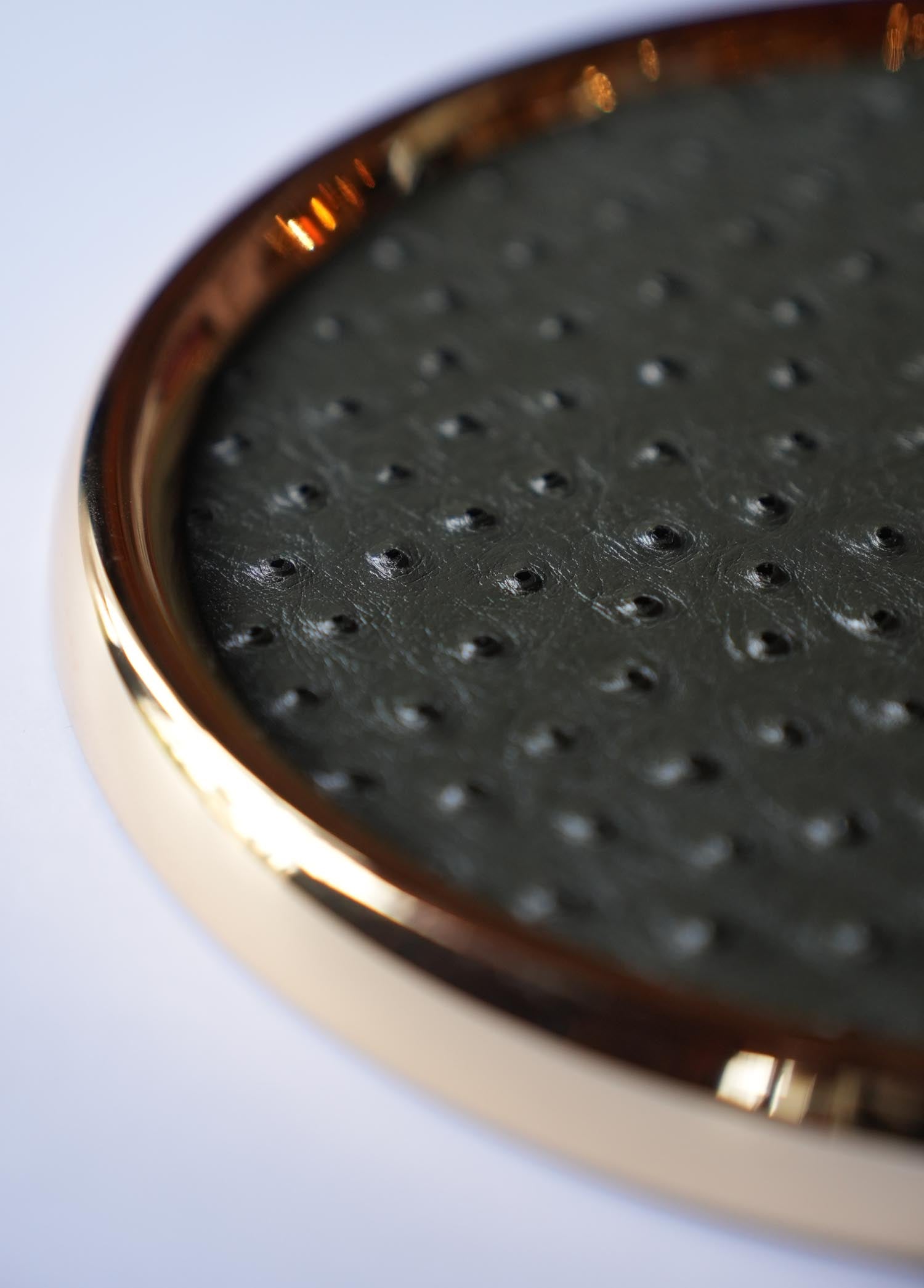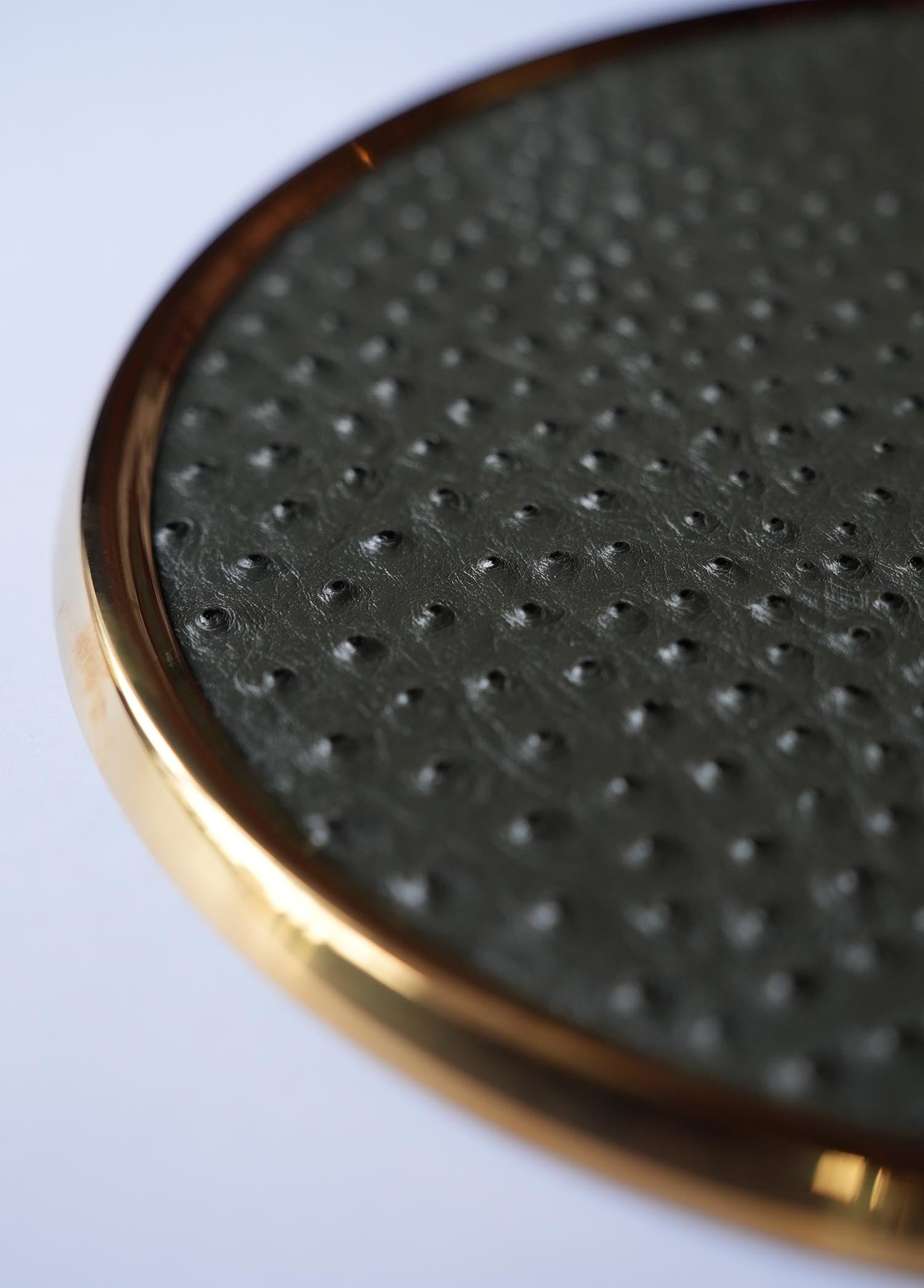 - Haki Yeşil Deve Kuşu Deri Kahve Tepsisi