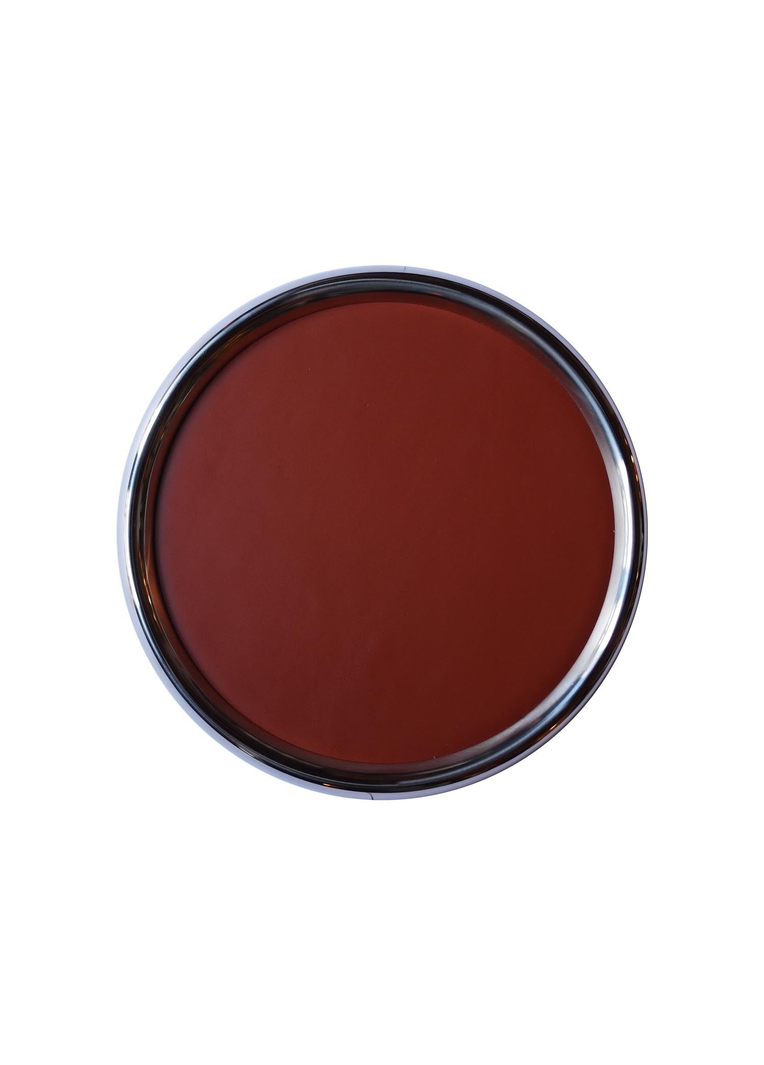Bordo Renk Deri Gümüş Detaylı Kahve Tepsi