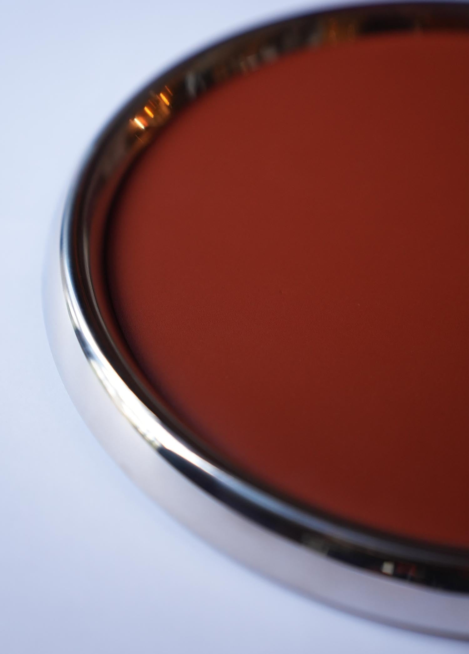 - Bordo Renk Deri Gümüş Detaylı Kahve Tepsi