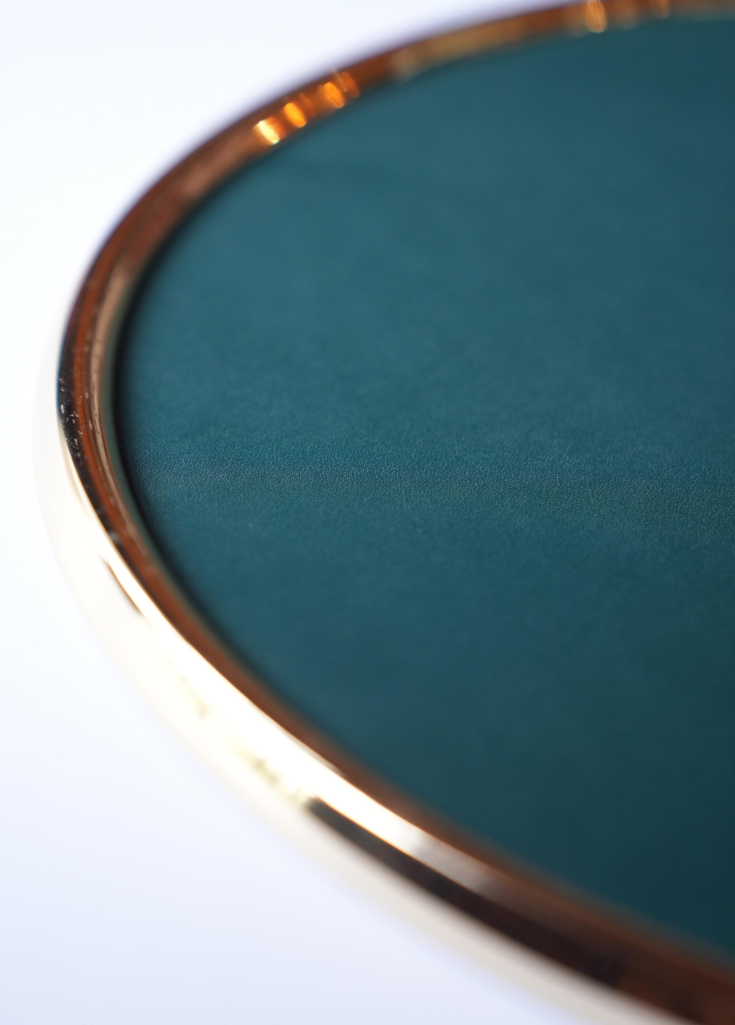- Yuvarlak formlu, gold aksesuarlı , petrol yeşil deri supla