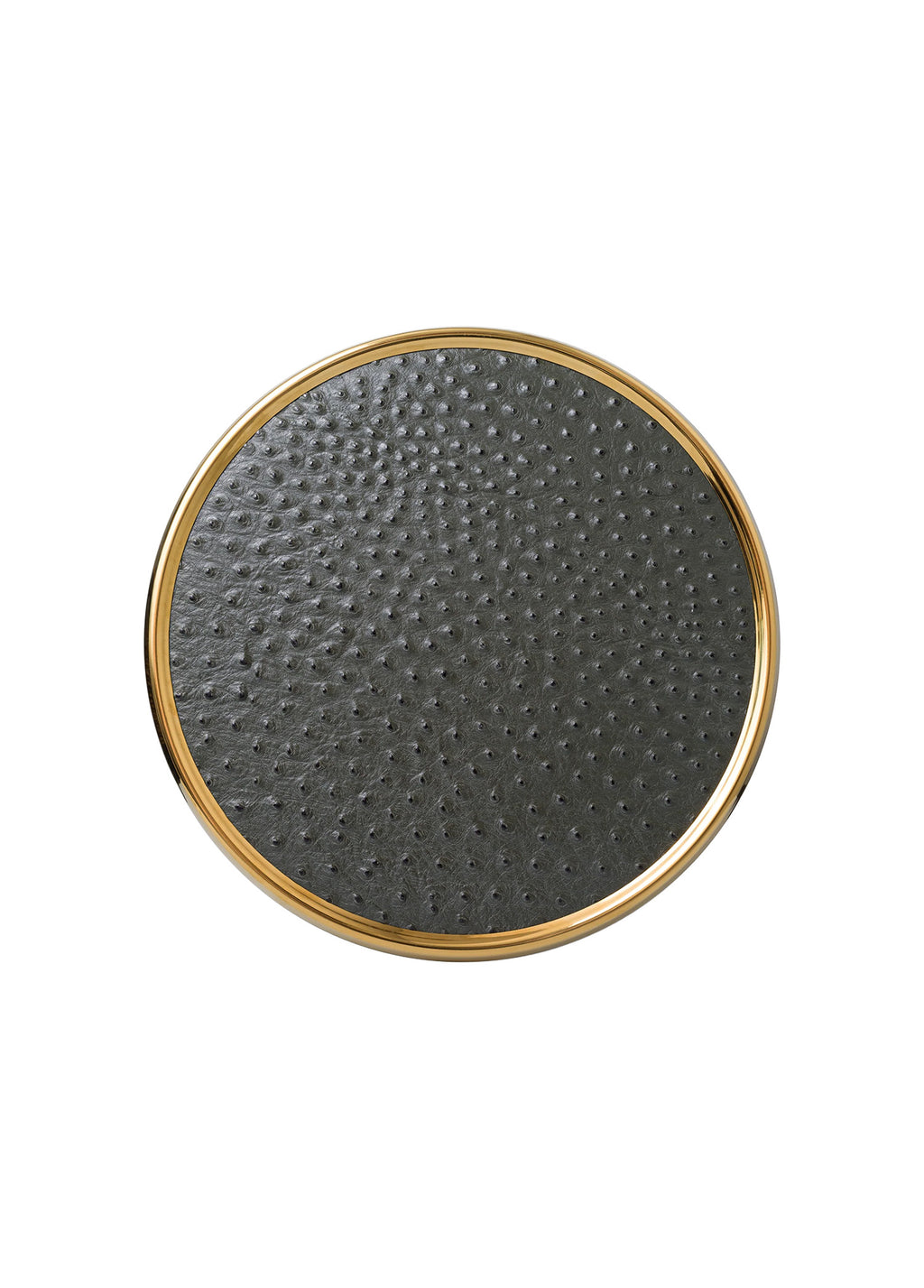 Haki Yeşil Deve Kuşu Deri Supla ve Kahve Tepsisi