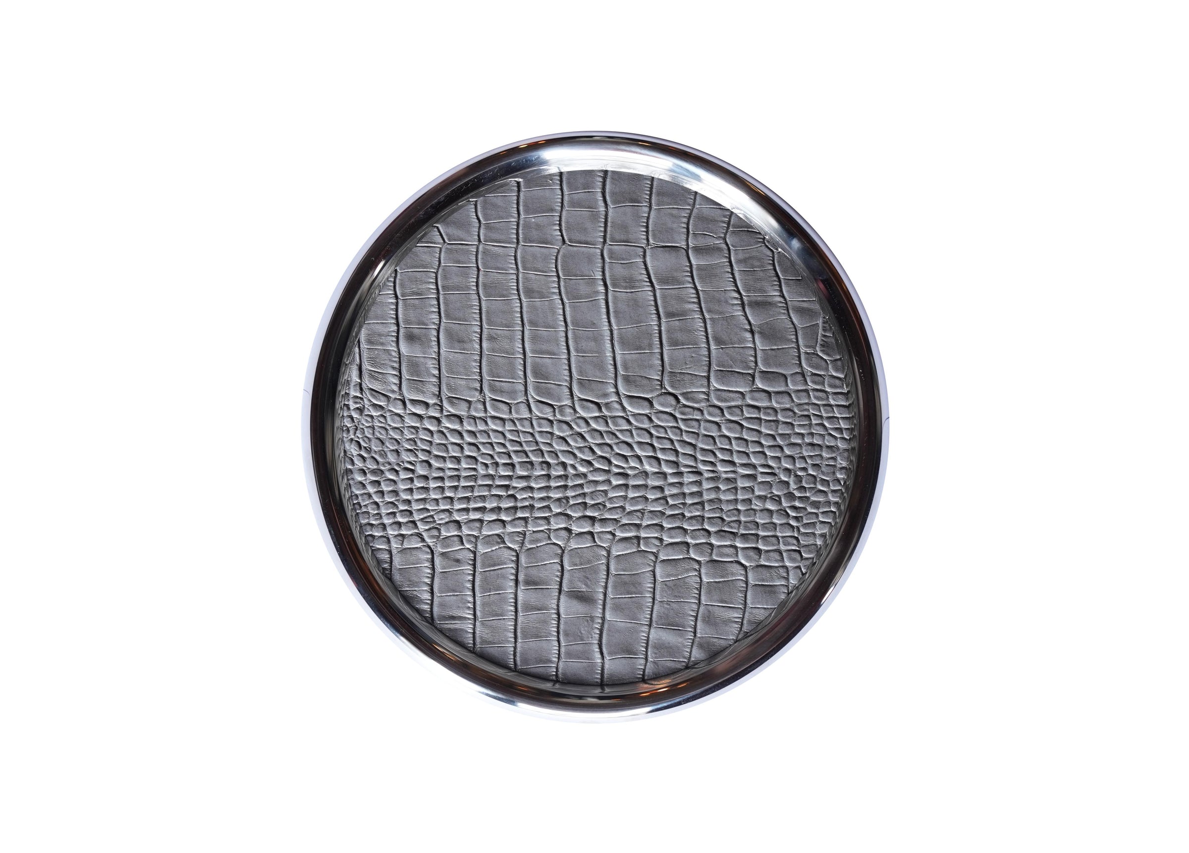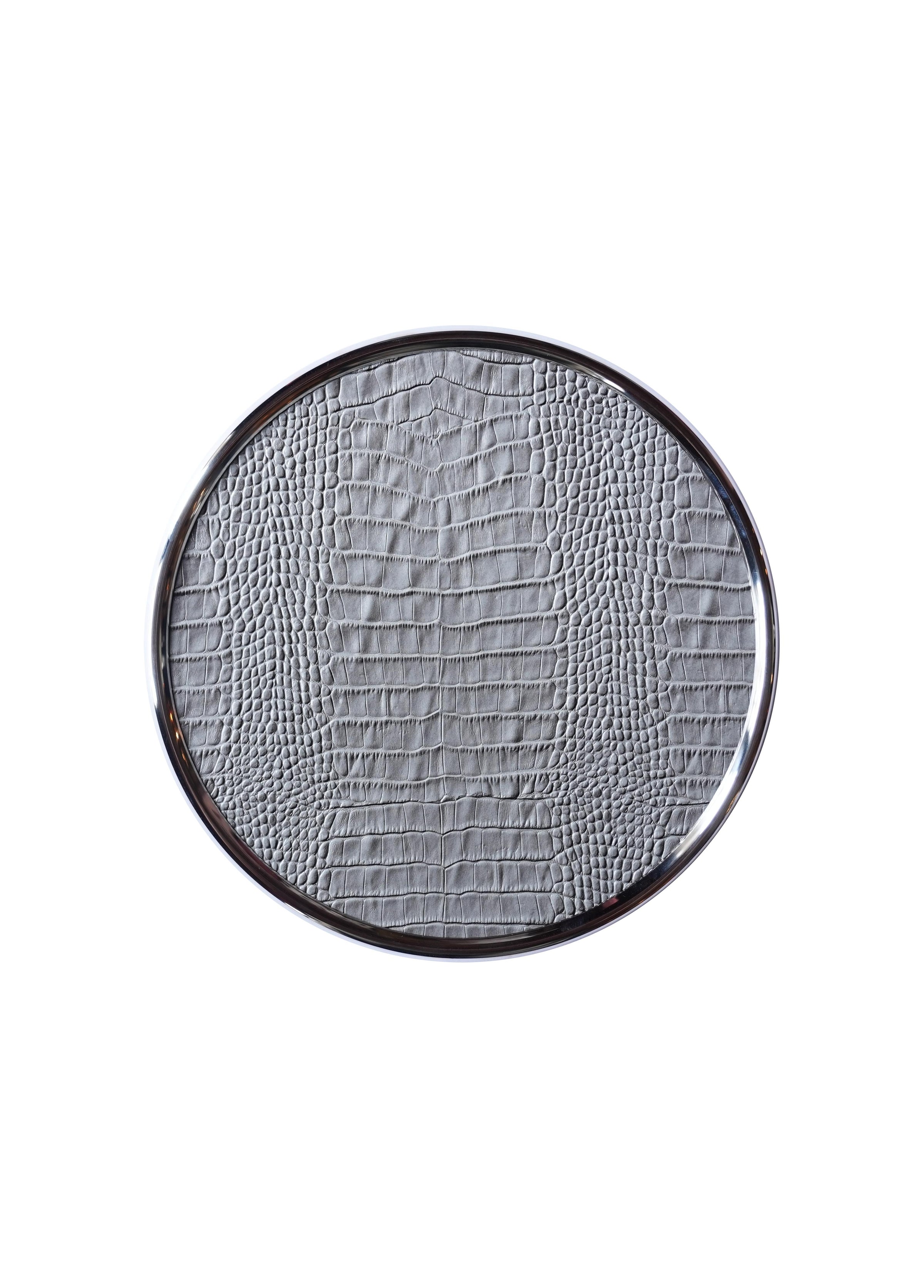 - Yuvarlak formlu, Gri Crocodile Deri Supla