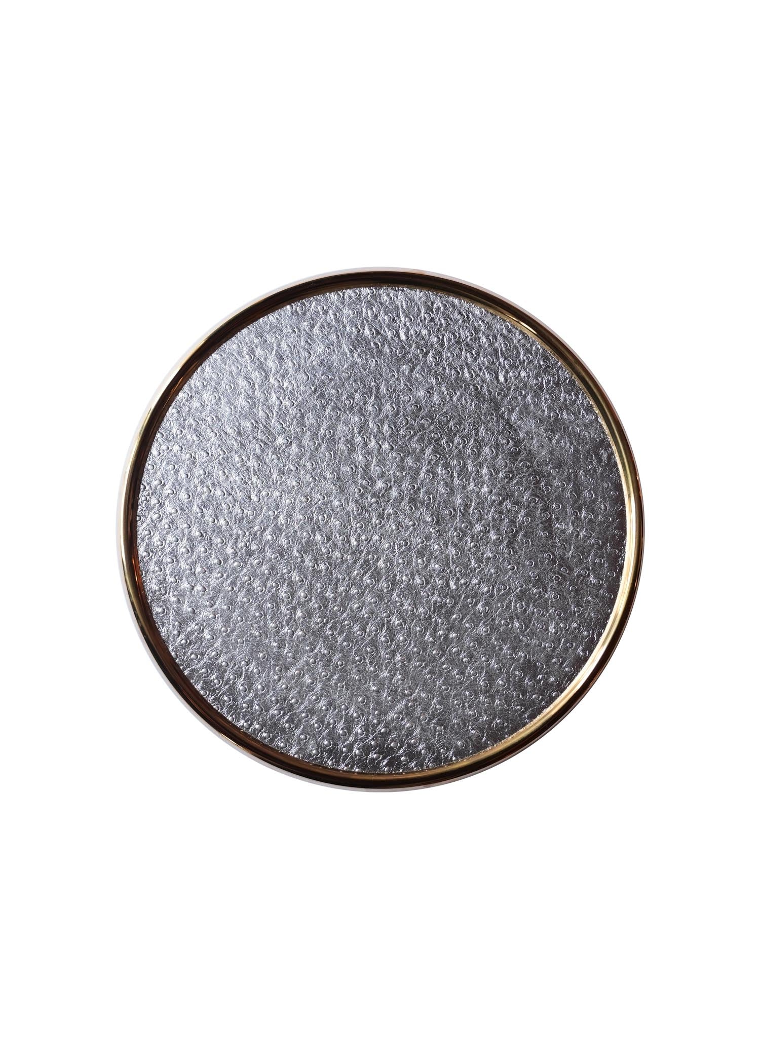 - Yuvarlak formlu, Gümüş Parlak Deve Kuşu Deri Supla