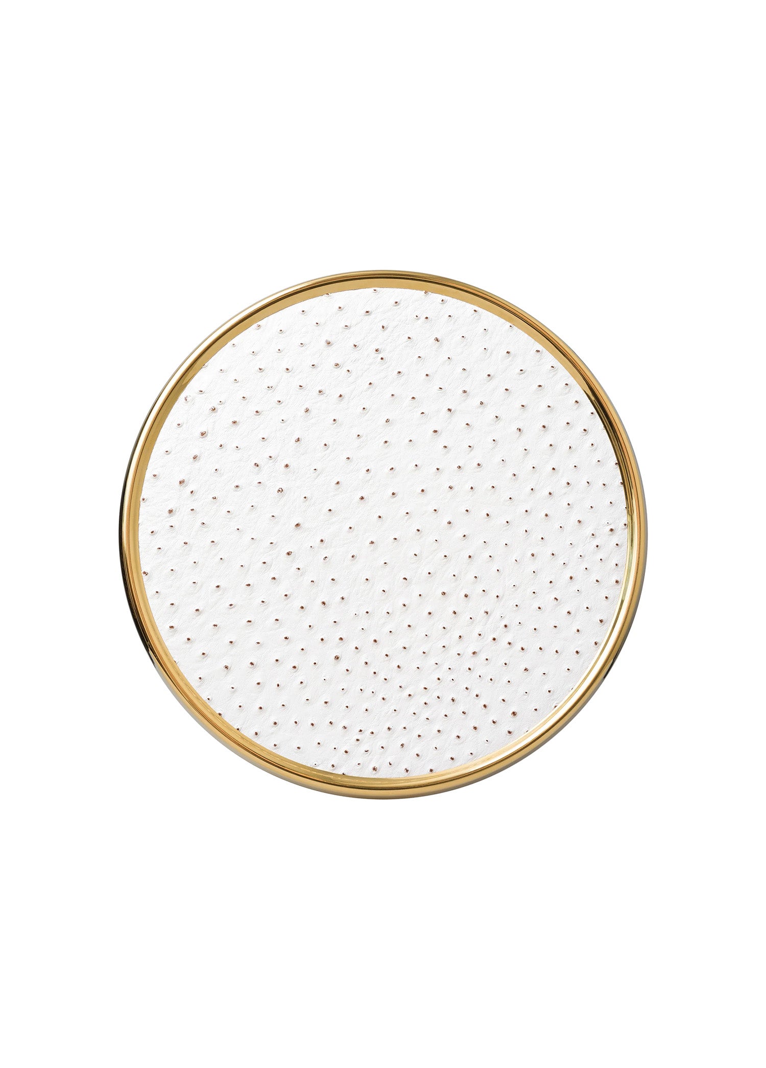 - Yuvarlak formlu, Beyaz Deve Kuşu Deri Supla