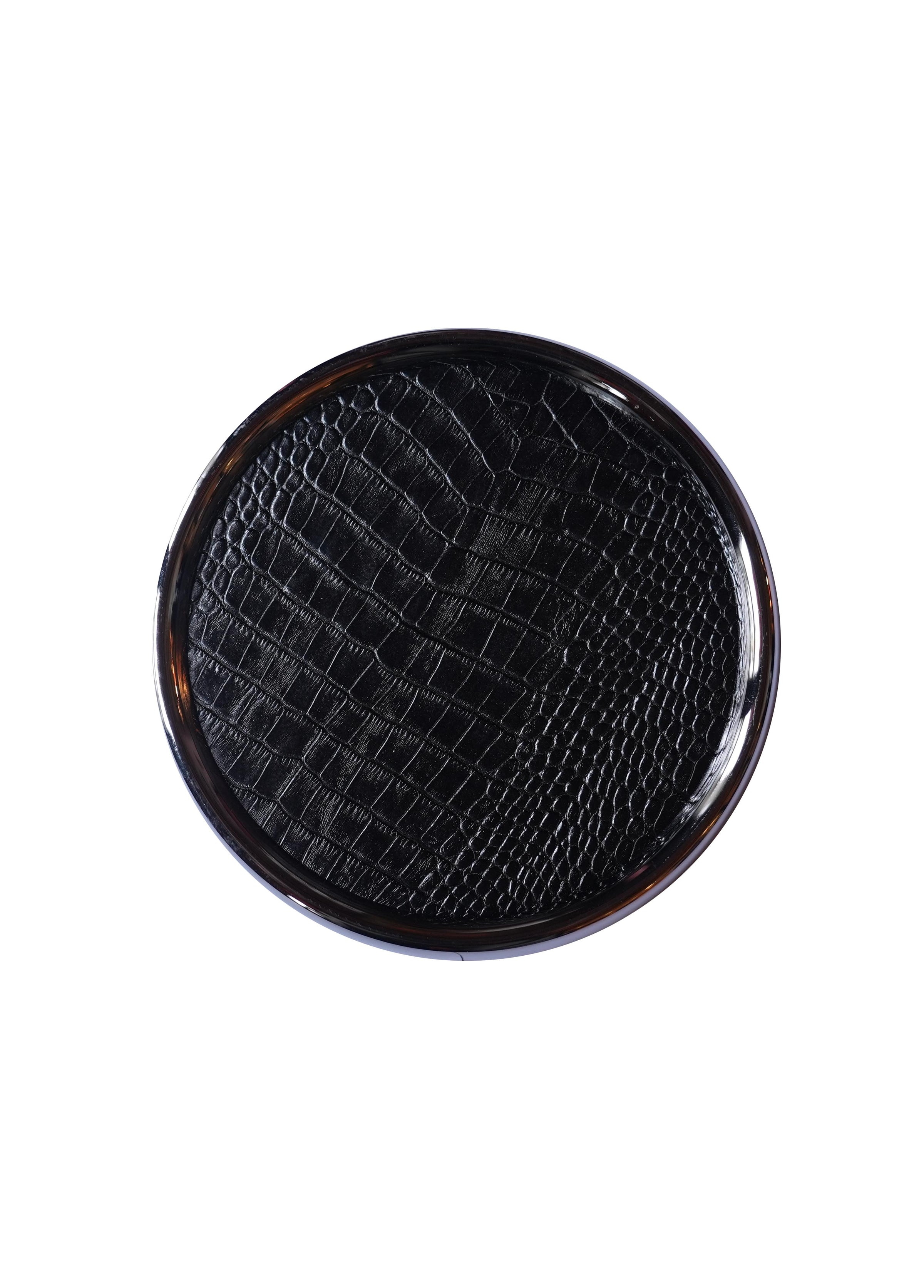 Siyah Crocodile Deri Supla ve Kahve Tepsisi