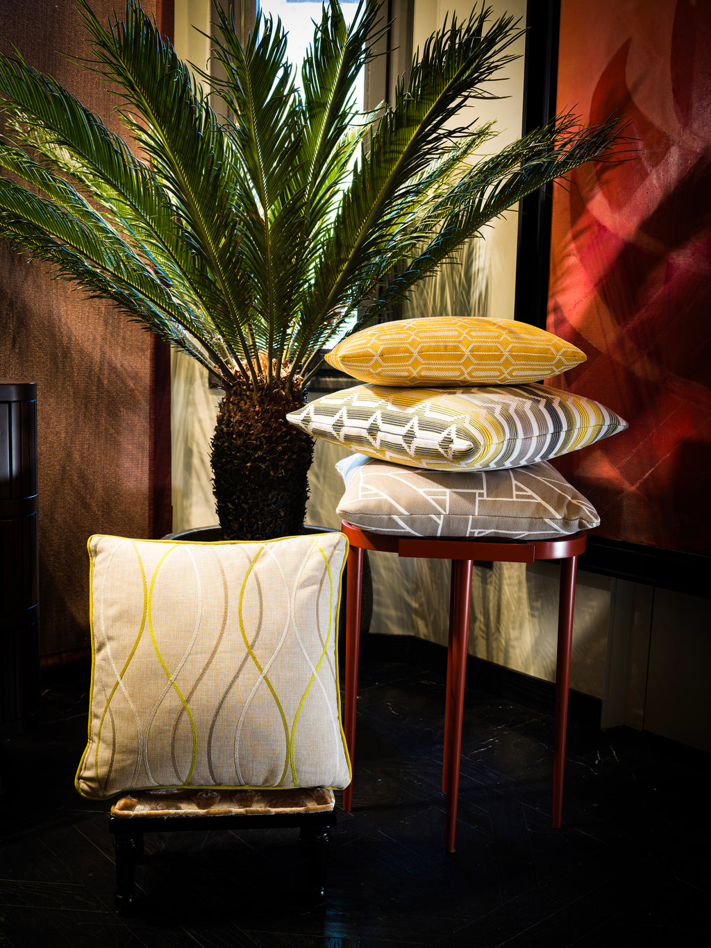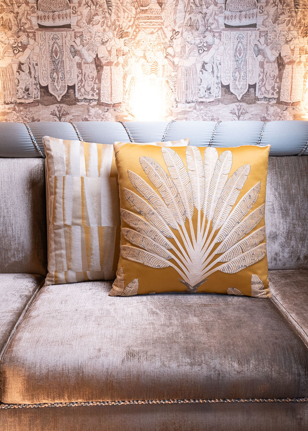 Sarı Palmiye Desenli Yastık