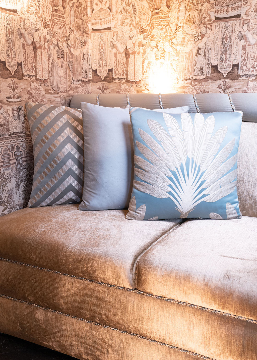Turkuaz Palmiye Desenli Yastık